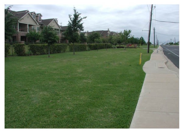 This could be done with a combination of the neighborhood-scale wastewater reclamation system, illustrated above, using that water to irrigate the public areas – front yards, parkways, parks and such – and rainwater harvesting to irrigate the private spaces, the back yards. Under this scheme, roof runoff would collect in “water quality” tanks, as shown in the illustration in Figure 17. That part of it conforms to what Austin sets forth in its rules as “rainwater harvesting” for water quality control, under which these tanks would have to drain within 48 to 72 hours. In this scheme, however, these tanks would be connected to rainwater harvesting cisterns, where that water could be held until whenever it is needed to irrigate the back yard. And only when those cisterns were full would any water even pond up in the water quality tanks, to eventually flow “away”. So a lot of the roof runoff would be harvested, to be used for irrigation, instead of running “away”.
