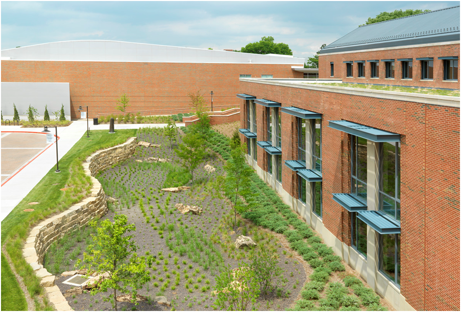 By taking care of water quality management of rooftop runoff like this, the green infrastructure needed to treat runoff from the rest of the site could be downsized. Bioretention beds would need to be sized only for the area and the impervious cover level obtained by omitting all the rooftops. That saves more money, while still well maintaining the hydrologic integrity of the site.