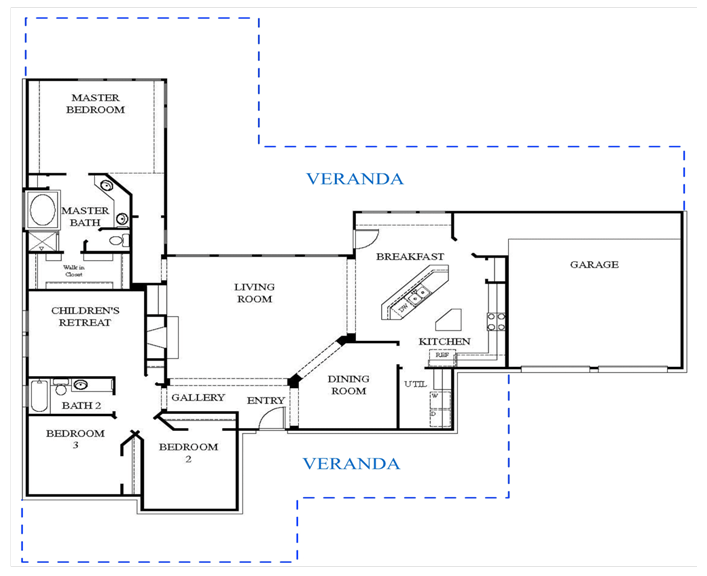 Obviously, single-story houses would be favored, so as to create as much “routine” roofprint as practical. Single-story house plans of several builders active in the Hill Country were examined to see where the addition of verandas could be accommodated, such as is illustrated in Figure 9. It does appear that significant roofprint could readily be added, so that houses with “moderate” areas of living space could have enough roofprint added to obtain the “right-sized” roofprints. Of course, if the house were designed around this idea from the start, these designs could no doubt provide the needed roofprint more cost efficiently, and would yield more attractive designs. So it is suggested that architects and builders consider this, and create “Hill Country vernacular rainwater harvesting house designs”.