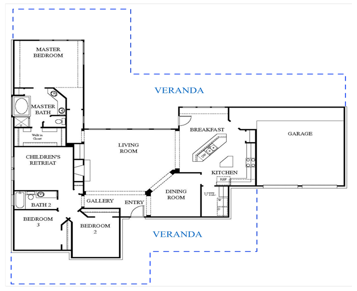 Obviously, single-story houses would be favored, so as to create as much “routine” roofprint as practical. Single-story house plans of several builders active in the Hill Country were examined to see where the addition of verandas could be accommodated, such as is illustrated in Figure 9. It does appear that significant roofprint could readily be added, so that houses with “moderate” areas of living space could have enough roofprint added to obtain the “right-sized” roofprints. Of course, if the house were designed around this idea from the start, these designs could no doubt provide the needed roofprint more cost efficiently, and would yield more attractive designs. So it is suggested that architects and builders consider this, and create “Hill Country vernacular rainwater harvesting house designs”.